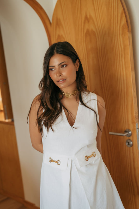Em promoçãoPaola Short Dress Linen | Fuchsia