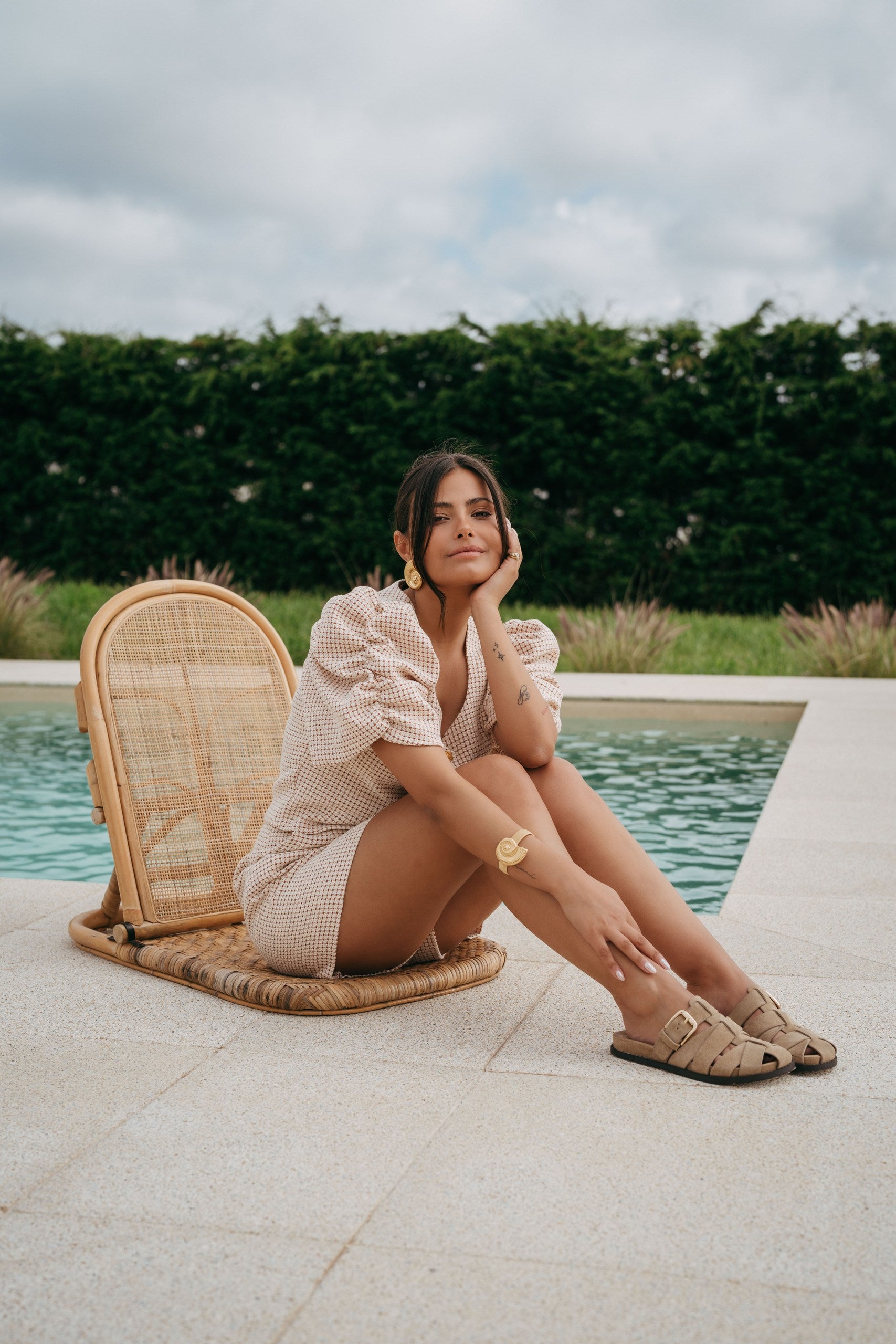 A modelo mede 1,63 e veste o tamanho S.